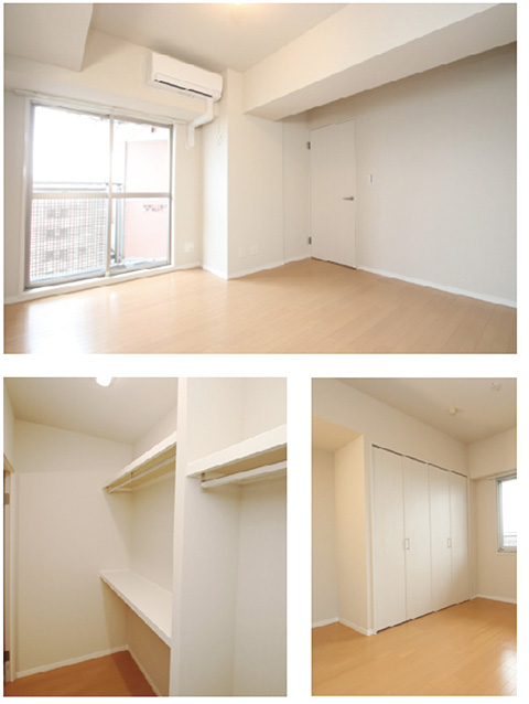 間仕切りを見直し、どちらの部屋にもゆったりとベッドを配置できる広さに変更しエアコンも設置。近年の核家族化の傾向により、「部屋数の多さ」よりも「一部屋ごとの広さや快適さ」を重視するニーズが高まっています。こうしたトレンドをふまえ、部屋数を抑えながらも、それぞれの空間に十分な収納スペースを確保し、快適で暮らしやすい住空間を実現しました。