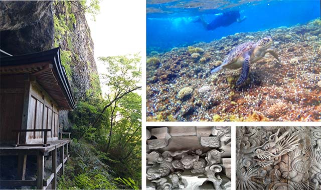 鳥取県の三徳三佛寺投入堂と神崎神社の彫刻など仏像だけでなく歴史ある建物も楽しみにしているオーナー様。趣味はトレッキングや寺社仏閣巡りで、沖縄の西表島ではシュノーケリングなどのマリンスポーツも満喫されています。