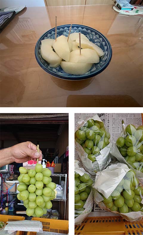 昔から秦野で農業を営んでおり、過去帳を遡ると江戸時代、約400年前から続いているようです。40年ほど前からは果樹農業に転換し、現在は複数の農園を主人と私、そしてお手伝いの方3人で切り盛りしています。栽培しているのは、幸水をはじめとする「梨」と、巨峰やシャインマスカットなどの「ブドウ」です。