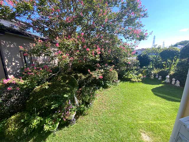 自宅のお庭では、鮮やかな百日紅(サルスベリ)が花を咲かせていました。新築時には、現在の3分の1ほどの大きさだったのだとか…。夏の時期3カ月間花を咲かせ、季節とゆっくりとした時の流れを知らせてくれます。